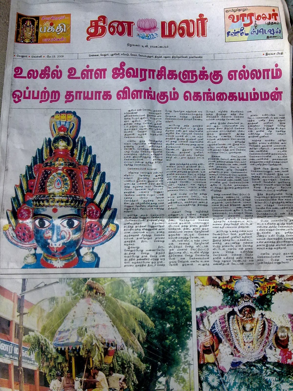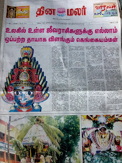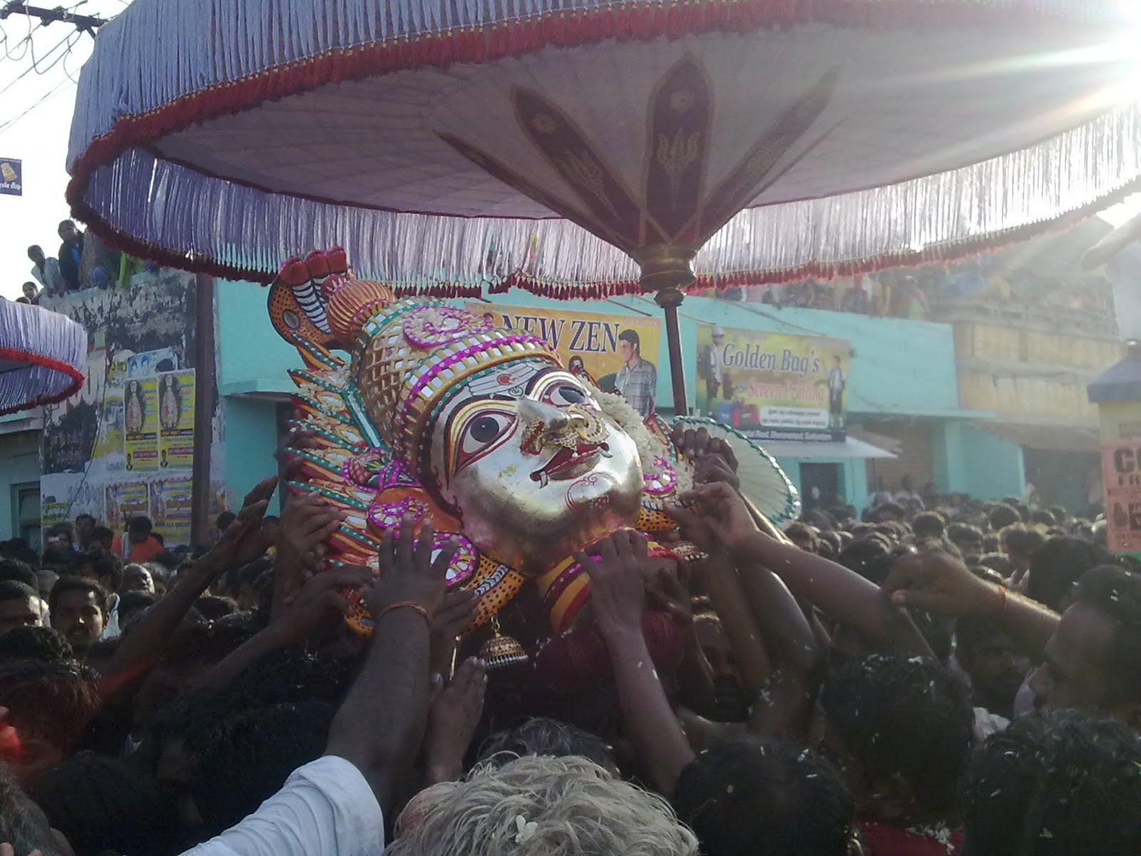 इस घटना को लोकप्रिय रूप से सिरासु ( சிரசு , का अर्थ है सिर) त्योहार कहा जाता है। इस कार्यक्रम को देखने के लिए देश के विभिन्न हिस्सों से लगभग दस लाख लोग शहर में आते हैं। अम्मां उसे सिर पर उठाए हुए देखना एक दावत होगी, जिसे देखकर ऐसा लगेगा मानो वह लोगों की भारी भीड़ पर तैर रही हो। मंदिर तक उनके पूरे रास्ते में कई गांवों के विभिन्न कलाकार प्रदर्शन करेंगे। कोई भी कई ग्रामीण कला रूपों जैसे करगम, सिलंबु , पुली वेशम और कई अन्य मार्शल आर्ट को मंदिर तक जाते हुए देख सकता है। यह इस बात का प्रतीक है कि अम्मां इतनी खुश हैं कि वह उस सिर के साथ जीवित होने वाली हैं जो उनके शरीर पर लगने वाला है।